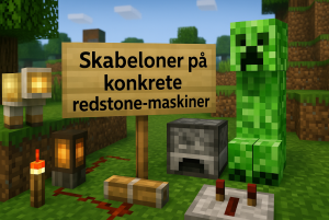 Skabeloner på konkrete redstone-maskine Herunder får du skabeloner på konkrete redstone-maskiner, inddelt efter sværhedsgrad – begynder, mellem og avanceret – samt hvad du kan bruge dem til. Hver skabelon indeholder
